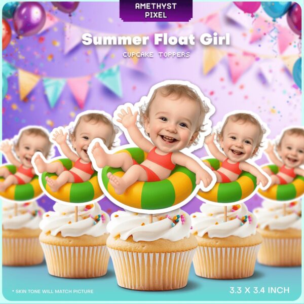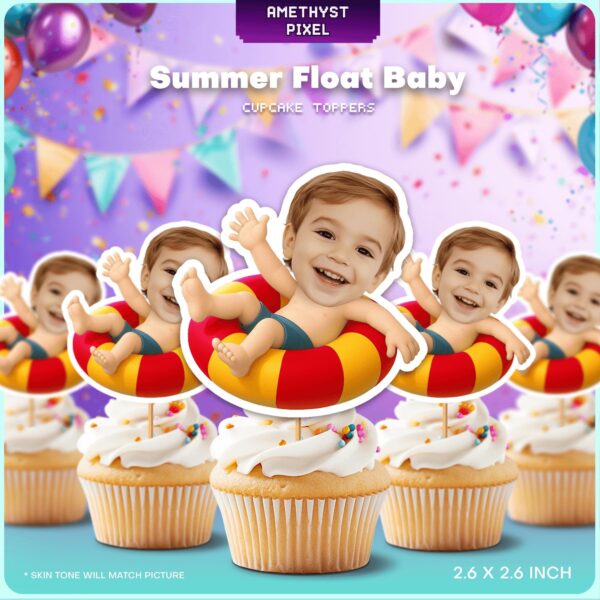 Custom Face Summer Pool Float Cupcake Toppers for Baby Parties