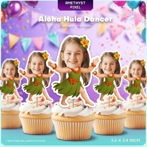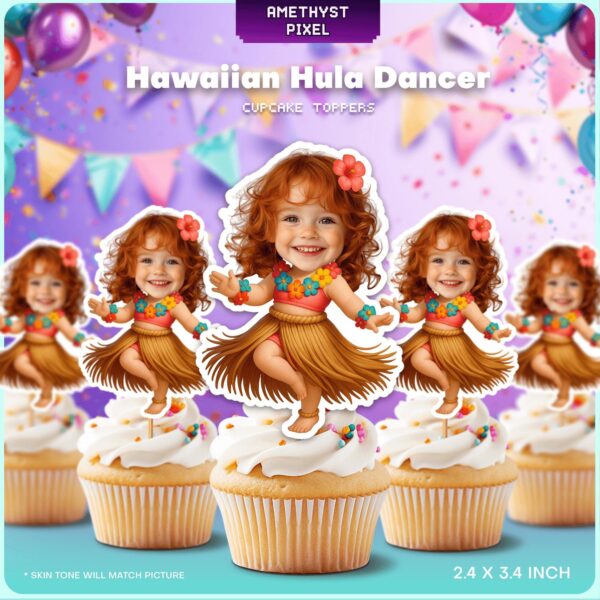 Custom Face Hawaiian Hula Dancer Cupcake Toppers for Tropical Toddler Celebrations