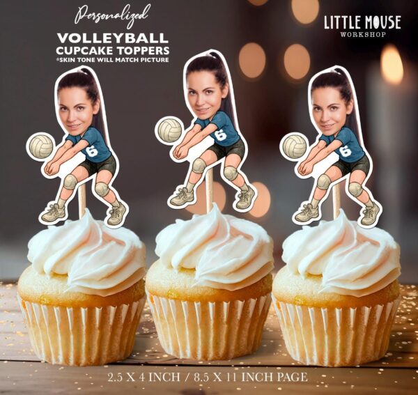 Custom Face Volleyball Player Cupcake Toppers for Team Spirit Parties